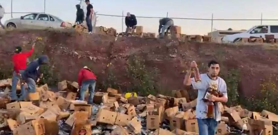 El conductor resultó ileso, pero la mercancía quedó regada en la carretera. Algunas botellas se rompieron, pero el resto del producto fue robado por los colonos y transeúntes que se acercaron al lugar del accidente.