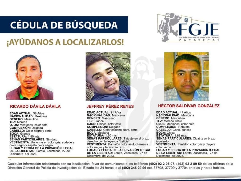 Hasta el momento, se desconoce el paradero de estas personas, de quienes la Fiscalía General de Justicia del Estado (FGJE) ya difundió las fichas de búsqueda correspondientes.