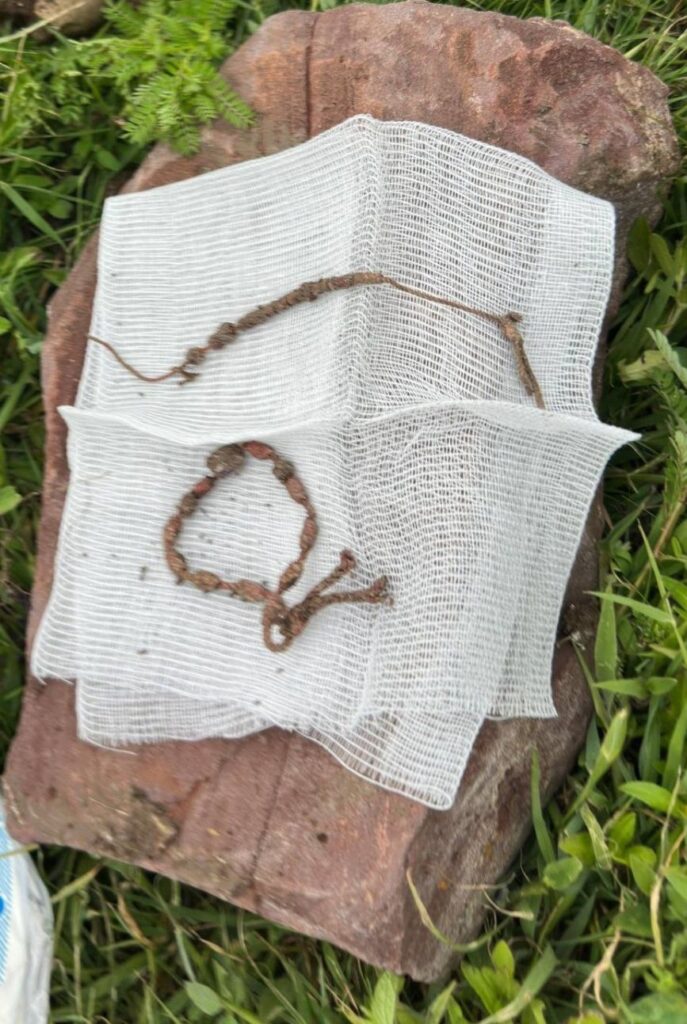 Entre los hallazgos se encontraban fragmentos de fémur, manos y pies, algunos con señales de cortes y fracturas. La escena era desoladora: tierra removida, huesos dispersos y apenas un par de pertenencias personales, dos sencillas pulseras rojas de hilo con cuentas, que parecían hablar en silencio de la vida que alguna vez acompañaron.