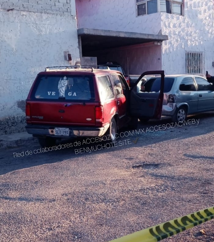 Accesozac – Zacatecas.- Esta mañana, un hombre fue ultimado a balazos cuando viajaba en su camioneta, lo que provocó que terminará impactado con una vivienda y otro vehículo.