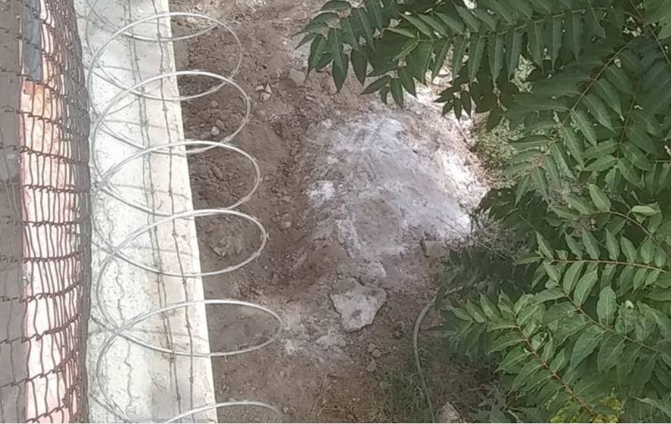 El lugar donde quedó el cuerpo, fue junto a la barda perimetral que conecta con los otros domicilios, debajo de un pino y con cal a su alrededor.