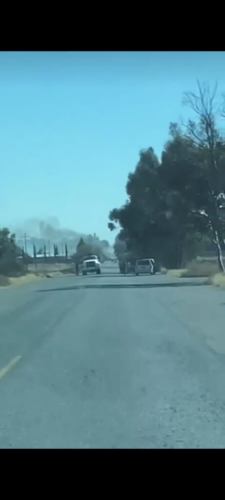Enfrentamiento en pinos Zacatecas, deja un sicario abatido y al menos 10 vehículos incendiados.
