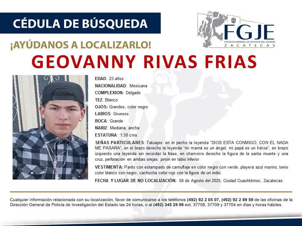 De acuerdo con reportes oficiales, ambos habrían sido privados de su libertad el pasado domingo tras salir de sus domicilios en San Pedro Piedra Gorda, Zacatecas.
