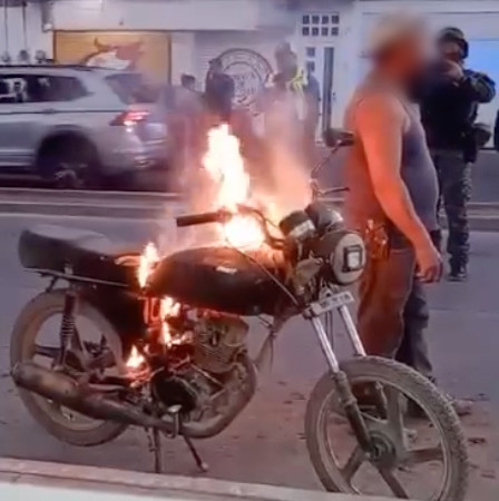 Un hombre, al no tener la documentación correspondiente para su motocicleta, optó por una medida extrema: prender fuego a su vehículo para evitar que las autoridades se la llevaran.