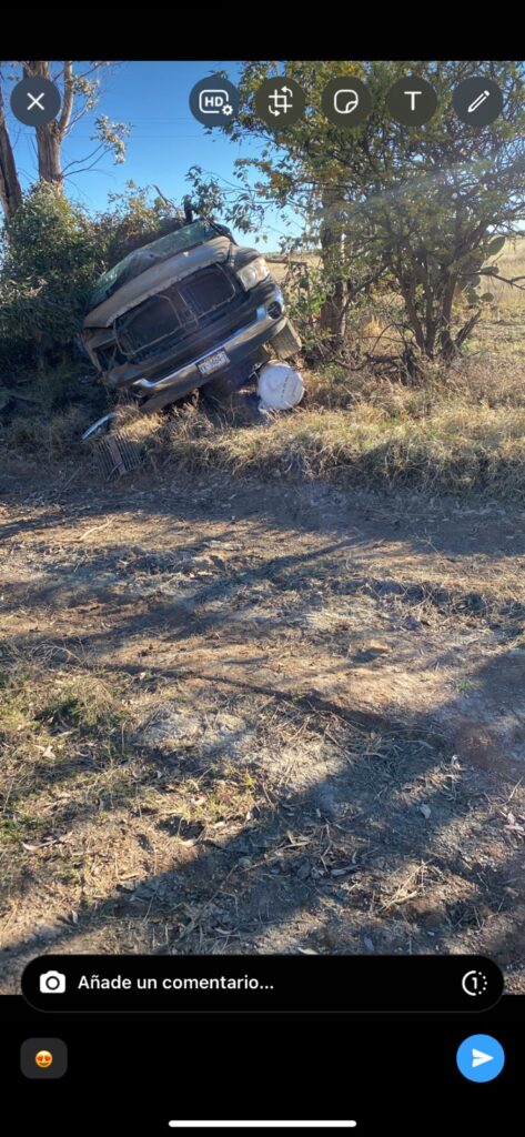 El percance se registró alrededor de las 17:00 horas, cuando una camioneta pickup, en la que viajaba solo el conductor, se salió del camino y volcó. La unidad terminó con las llantas hacia arriba fuera de la carretera.