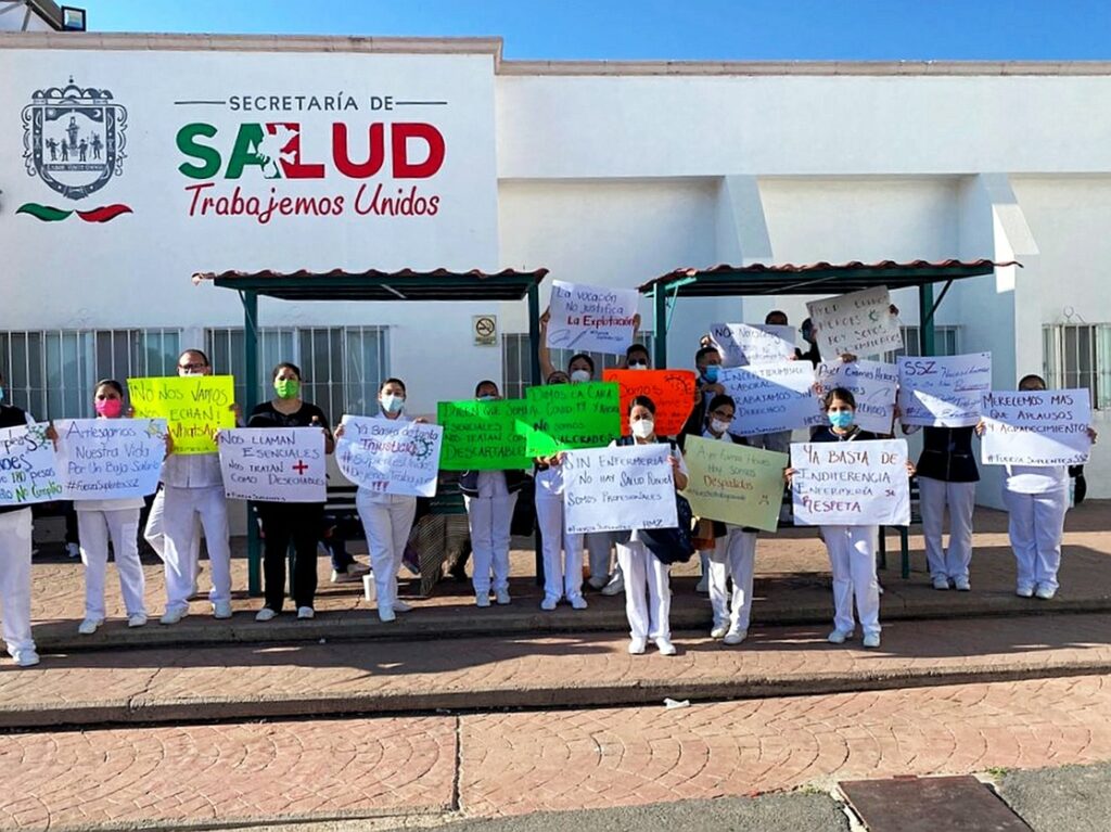 Las manifestaciones no se hicieron esperar en las clínicas municipales de Loreto, Ojocaliente, Fresnillo, Río grande, Jerez, Guadalupe y en la capital zacatecana donde las enfermeras con diversas leyendas en cartulinas mostraban su descontento la más significativa fue la que decía