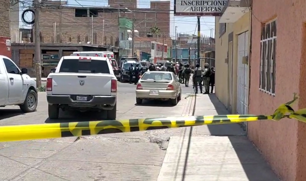 La agresión con proyectil de arma de fuego se registró sobre la calle Cruz Roja de la colonia Maravillas, hecho en el que lamentablemente perdieron la vida dos personas del sexo masculino, uno de ellos un menor de edad y un adulto que fue identificado como elemento activo de la Policía Municipal de Fresnillo.
