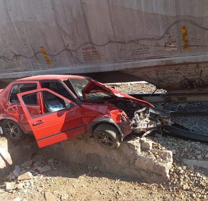 El automóvil involucrado quedo severamente dañado en su carrocería tras ser impactado de lleno por las Locomotoras de la empresa norteamericana BNSF con los números económicos 7309 y 4032 que eran operadas por el maquinista de nombre Marco Antonio “N”.