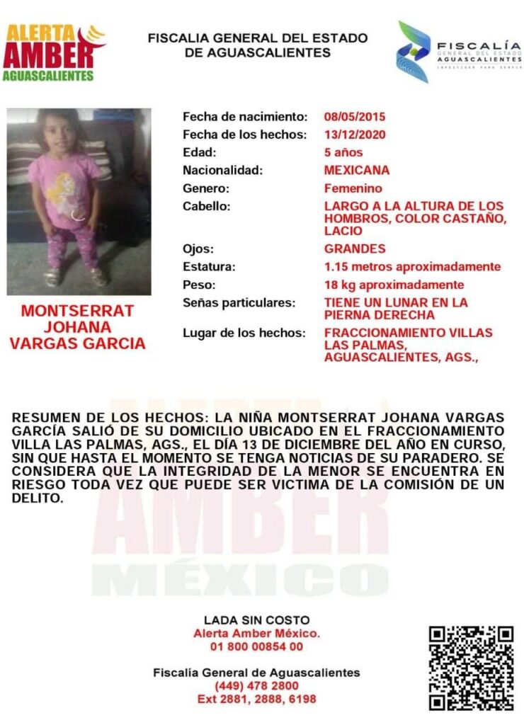 La Fiscalía General del Estado de Aguascalientes había emitido una Alerta Amber para su localización.
