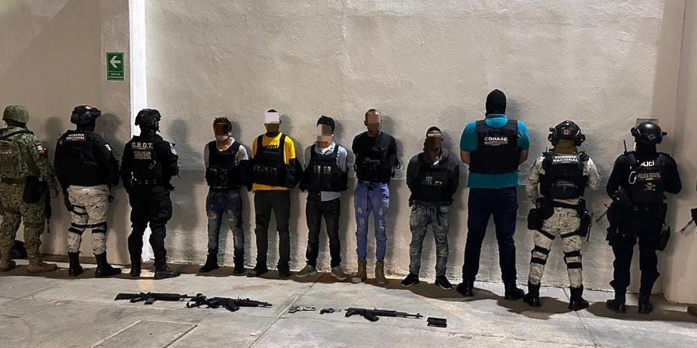 En el lugar, los elementos de seguridad detectaron a personas armadas que pretendían ingresar a un domicilio. De inmediato, se activó un operativo para detenerlos.