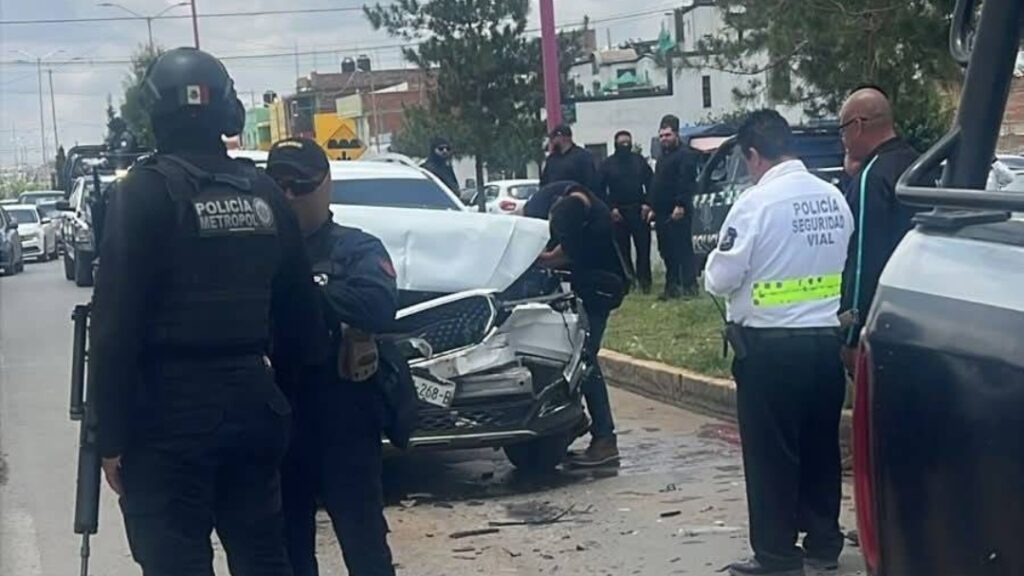 Guadalupe, Zac.– Dos elementos de la Policía Municipal de Guadalupe resultaron heridos este martes luego de que la patrulla en la que viajaban fuera impactada por otro vehículo en la carretera que conduce a Sauceda de la Borda, en dirección al centro del municipio.