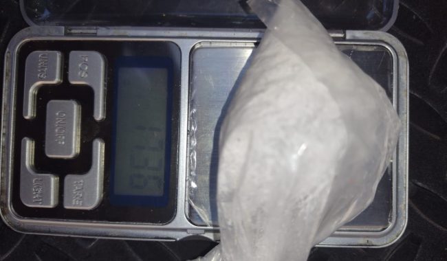 Al detener el vehículo, los policías de Aguascalientes, encontraron una bolsa con 17.36 gramos de droga cristal y, posteriormente, llegó al lugar Diego Iván, quien intentó evitar la detención de los otros dos detenidos y fue detenido a su vez por su actitud violenta y amenazante.