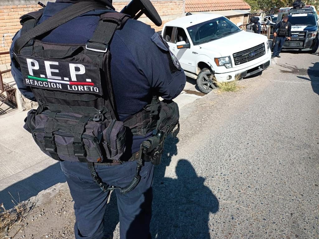 Loreto, Zac., 13 de marzo de 2023.- La oportuna reacción de los elementos policiales permitió que la mañana de este lunes fueran detenidas tres personas que habrían perpetrado una agresión contra elementos policiales en el municipio de Loreto; no se reportan lesionados y se aseguraron armas de fuego.