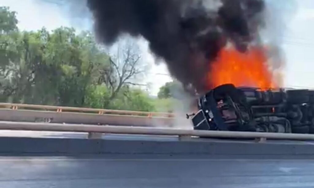 GUADALUPE, Zacatecas – Un dramático incidente sacudió la mañana de este miércoles en el bulevar Bicentenario, cuando un tráiler cargado con envases de cerveza vacíos sufrió un aparatoso vuelco y se prendió en llamas justo frente a la Comandancia de la Coordinación Municipal de Protección Civil. El suceso tuvo lugar minutos antes de las 10 horas, dejando al conductor del vehículo en estado crítico.
