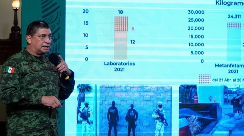 El titular de la SEDENA mencionó además, que las drogas sintéticas han ido ganando terreno, por lo que su producción ha ido en ascenso en los últimos años, con respecto a la marihuana o la cocaína, las cuales han bajado su producción y aseguramiento, ya que llevan un proceso de elaboración diferente.
