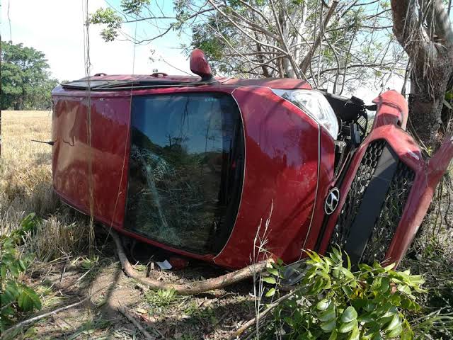PINOS, ZACATECAS. Fue una camioneta cerrada la que perdió el control en plena carretera haciendo que se saliera del camino para al final volcarse.