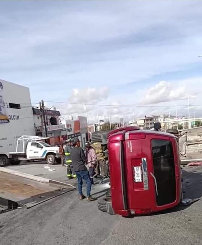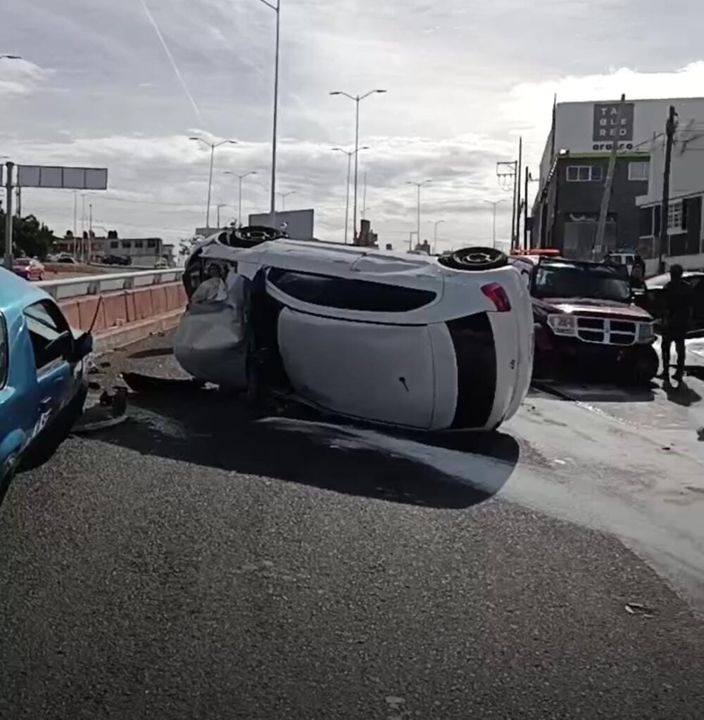 Este miércoles, a las 10:00 horas, se registró un choque múltiple en la avenida Nezahualcóyotl Zacatecas. Dos automóviles, un blanco y una camioneta Nitro, terminaron volcados, mientras que un tercer vehículo, color azul, quedó arriba de la banqueta.