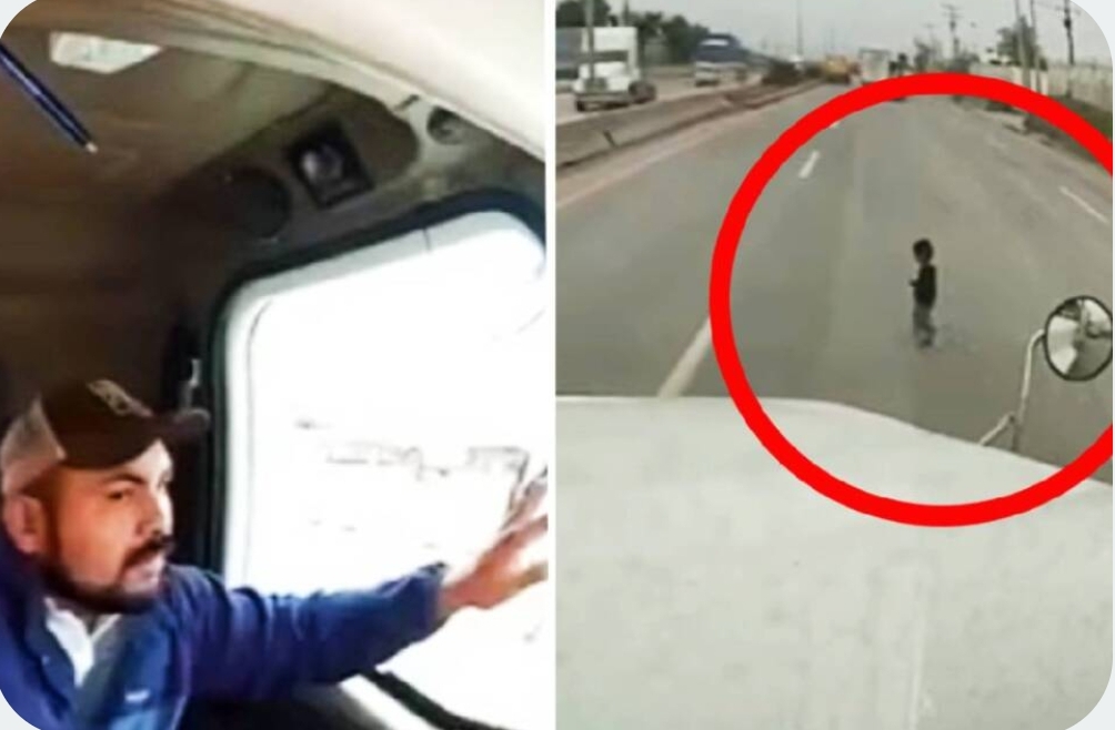 En el video se ve cómo el conductor se sorprende al ver al niño en la carretera, detiene su camión y corre hacia él. También se ve cómo otro camión se aproxima, pero el conductor que ayuda al niño le hace señas para que se detenga.