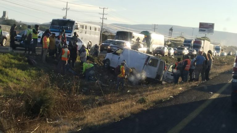 La van volcó en la federal 45 y ocho hombres terminaron en el asfalto — cuatro de ellos en el hospital Poco después de las 18 horas del jueves, una camioneta tipo van perdió el control en la carretera federal 45, a 400 metros del puente que conecta con la carretera de cuota a Aguascalientes, … Sigue leyendo La van volcó en la federal 45 y ocho hombres terminaron en el asfalto cuatro de ellos en el hospital