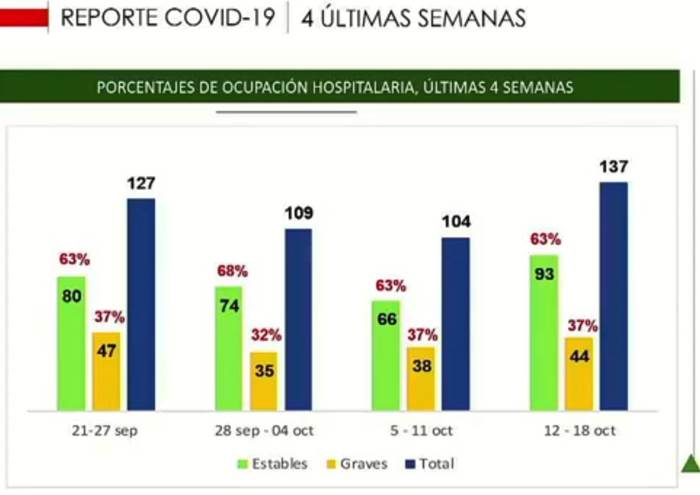 En la segunda semana de agosto se había alcanzado lo que se consideraba el pico máximo en la curva de contagios con 688, pero del 12 al 18 de octubre se tuvo un repunte de casos, lo que ha alertado a las autoridades estatales pues podría llevar nuevamente al confinamiento.